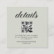 Carte de réponse/détails de mariage vert sauge élégant (couleur personnalisable) avec un code QR ajouté. Personnalisez avec votre photo au verso. Contactez-moi pour obtenir de l'aide pour vos personnalisations ou pour demander d'autres produits Zazzle assortis ou coordonnés pour votre (vos) événement(s).