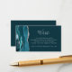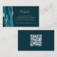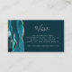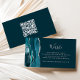 Le bord gauche de cette élégante carte d'accompagnement de site web de mariage moderne présente une bordure d'agate aquarelle bleu sarcelle rehaussée de fausse brillance argentée. Le titre apparaît dans un script écrit à la main, avec un texte personnalisable ci-dessous dans une police de caractères en cuivre argenté sur fond de sarcelle foncée. Le verso présente un code QR personnalisé que les invités peuvent scanner pour visiter votre site web et répondre en ligne.