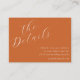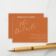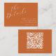 Cette carte d'accompagnement de site Web de mariage élégante présente un fond terracotta chaud avec une belle calligraphie script, ajoutant une touche de sophistication à vos détails de mariage. Conçu avec un code QR pratique, les invités peuvent facilement accéder à votre site Web de mariage pour des mises à jour importantes et des RSVP. Le design minimaliste, associé à une typographie intemporelle, fait de cette carte un ajout chic et moderne à votre suite de mariage.