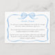 Cette élégante conception d'insertion de nœud bleu clair à l'aquarelle est à la fois élégante et dans l'air du temps, avec un cadre de nœud en ruban populaire. Ceci a été peint à la main par mes soins à l'aquarelle avant d'être numérisé. Il y a de la place pour ajouter des informations supplémentaires qui ne rentrent pas sur l'invitation. Vous pouvez également ajouter un code QR pour le registre ou la réponse