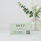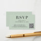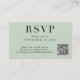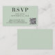 Carte de boîtier RSVP classique à la sauge traditionnelle verte à la sauge légère avec "RSVP" dans une élégante typographie serif. Entrez l'adresse URL de votre site Web mariage pour créer un code QR numérisable pour que vos invités puissent scanner en ligne vers RSVP et obtenir des détails mariages supplémentaires tels que les hébergements et les itinéraires.