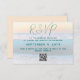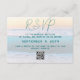 Cartes de réponse de mariage de plage avec code QR pour le site mariage. Demandez aux clients de répondre à l'invitation en ligne. Inclure une date et d'autres informations dans le texte bleu turquoise au-dessus d'une image d'arrière - plan de lever de soleil océanique.