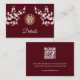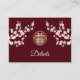 Des fleurs de cerisier rose assez poussiéreuses et un double symbole de bonheur doré sur un marron / arrière - plan rouge foncé. Ajoutez un code qr à l'arrière pour plus de détails sur votre site web mariage et rsvp en ligne.