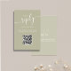 Ce design comprend une carte de boîtier de code RSVP QR mariage avec des couleurs vert sauge, un style minimaliste, avec notre site en ligne, avec un script simple et élégant,