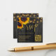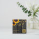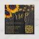 Faire-part de mariage de tournesol élégant rustique MINI TAILLE de réponse en ligne carte de boîtier carré avec code QR à balayage (généré automatiquement) sur un arrière - plan en bois de grange brun foncé avec des cordes de lumières scintillantes. ++++++++++ Papier à lettres correspondant disponible dans la collection.
