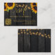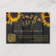 Cartes de boîtier de réponse en ligne rustique et élégant tournesol avec code QR à balayage (généré automatiquement) sur un arrière - plan en bois de grange brun foncé avec cordes de lumières scintillantes. ++++++++++ Papier à lettres correspondant disponible dans la collection.