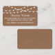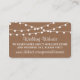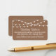 Simple mais élégant, les lampes à cordes de la collection rustique Kraft mariage est un design époustouflant avec de belles lumières à cordes blanches suspendues sur un arrière - plan à effet Kraft, qui est parfait pour toute célébration mariage rustique. Ces cartes d'insertion de site web mariage peuvent être personnalisées pour votre occasion spéciale et feraient l'insert parfait assorti pour toute suite de mariage rustique, douche nuptiale, fête de fiançailles, fête d'anniversaire et bien plus encore. Ces cartes peuvent être utilisées pour créer des cartes de détail, des cartes d'information pour les clients, des cartes d'hébergement, des cartes de direction, des cartes d'enregistrement des cadeaux ou des cartes de puits de souhaits, ainsi que des cartes de cérémonie et de réception. AFFICHER LES ÉLÉMENTS CORRESPONDANTS POUR CETTE COLLECTION