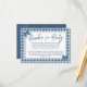 Encouragez les invités à rapporter une histoire spéciale avec cette charmante carte d'encart Books for Baby, conçue dans un motif bleu denim doux en vichy et accentuée par des arcs de coquette peints. Cette carte allie style classique et moderne, avec un poème sincère dans une calligraphie minimaliste et un mélange serif. Idéal pour les baby showers-garçons, les thèmes sans distinction de genre, ou les rassemblements rustiques d'inspiration méridionale. Ajoutez cet encart à votre suite d'invitation pour commencer à construire la première bibliothèque de bébé avec des lectures réfléchies et significatives.