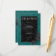 Transportez vos invités dans un monde d'élégance sombre et enchanteresse avec notre carte de réception de mariage gothique vintage. L'arrière - plan turquoise, âgé et profond, ouvre la voie à un contraste saisissant, à mesure que le texte blanc gras émerge des zones de texte noir complexes. Au sommet de cette invitation, une frontière gothique tridimensionnelle ornée d'un corbeau noir royal capture l'essence du mystère et de l'amour. Le dos est orné de deux vignes entrelacées de roses noirs formant subtilement un coeur autour de deux corbeaux embrassant, ce qui ajoute une touche d'allure dramatique. Lance la magie et donne le ton pour une journée de mariage inoubliable. Cette carte fait partie de la suite de Mariage Turquoise gothique Black Raven & Black Rose créée par Simply Farmhouse Press.