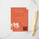 Une carte de détail mariage moderne dans un orange vif et rouge pamplemousse tendance. Cette nuance d'orange s'appelle Verona Sunset. Détails en faux or, une silhuette d'une fleur délicate. La typographie moderne et sur le dos ajouter votre propre photo en forme d'arc. Assurez-vous d'ajouter votre site Web de code QR.