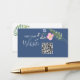 Country Blue Rustic est un design simple et joliment fleur sauvage. Des fleurs sauvages pastel de couleur pastel ornent l'avant, et une seule fronde de fougère pour l'arrière. L'arrière - plan bleu pays présente votre code QR. Renverse à blanc avec clarification de l'url du site et fronde de fougère décorative.