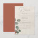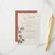 Cette carte de détails de mariage présente un design simple et élégant avec un spray d'eucalyptus vert et rouille à l'aquarelle sur un fond crème en détresse vintage. C'est délicat, élégant et discret. Créé par Simply Farmhouse Press.