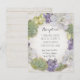 NE CONVIENT PAS AUX CARTES D'INVITATION CARRÉES OU RONDES - changez pour 3 1/2" x 5" pour les utiliser. Cartes d'invitation de réception assorties pour les événements formels organisés dans un lieu séparé, ou lorsque les listes d'invités sont distinctes ou pour des utilisations informatives telles que les directions de conduite, les informations sur l'hôtel et d'autres utilisations. Timeless et élégant, mais frais et nouveau. Disposition de texte de typographie moderne et conception artistique. Parfait pour un mariage dans un cadre désertique de l'Ouest rural au printemps ou en été avec des éléments naturels boho sud-ouest rustiques comme toile de fond et thème de réception. Pour les couples éco-responsables qui souhaitent une palette de couleurs vertes pour leur décoration de mariage, et la nature comme point de mire, ces plantes succulentes peintes à la main dans des nuances allant du gris poussiéreux, au vert menthe, sauge et lime jusqu'à un violet lavande entourent votre texte d'invitation avec une simplicité élégante. Entrelacés comme vos cœurs - et vos familles. Peut également être utilisé pour un cadre rustique de grange