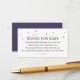 Joli et adorable insérer carte "livres pour bébé" avec des étoiles dorées arrosées et typographie classique. Le dos de la carte est en violet de prune solide avec du texte personnalisable pour l'honneur du baby shower.