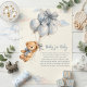 Designed to match a coordinated baby shower setup, this book for baby card blends beautifully with other decorations through its soft watercolor style, adorable little bear illustration, and dreamy cloud accents, adding a thoughtful and memorable touch to the celebration.