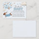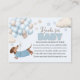 Books for baby enclosure card with adorable dachshund theme for a boy baby shower invitation. The book request card is Illustrated with a cute dachshund puppy wearing a blue sweater, floating amongst a bunch of soft blue and beige balloons. Playful clouds and stars add to the whimsical theme. Sure to bring smiles whilst evoking a gentle, joyful vibe.