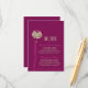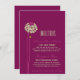 Ces encarts d'invitation de mariage donnent aux invités des directions vers l'église et la cérémonie, mettant en vedette de hauts dahlias magnifiques avec une délicieuse abondance de pétales sur des tiges élancées et majestueuses, dans des nuances de vert très doux, de vert printemps vibrant et de rose fuchsia sur un fond violet aubergine profond. La formulation des directions est entièrement personnalisable ; en alternant une police de caractères de mariage script, un lettrage classique et une grande police d'accentuation moderne.