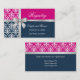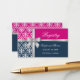 Carte D'accompagnement Damask Faux Silver Ribbon Navy Blue Fuchsia