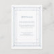 Ces cartes d'information glamour mariage vous offrent une touche moderne sur l'art déco classique. Un cadre géométrique et orné de bleu poussiéreux orne un élégant arrière - plan blanc pour un look de mariage élégant et vintage. Vous pouvez utiliser ces cartes pour vous renseigner sur l'itinéraire, la réception ou le transport, les informations sur l'hôtel ou l'hébergement et tout autre détail mariage que vous devez connaître à vos invités.