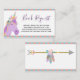 Le devant de cette mignonne invitation de baby shower demande de livre insérer des pastels branchés et une licorne mauve magique. La licorne est ornée d'une crinière arc-en-ciel ornée de fleurs et de plumes de saumons et d'une corne arc-en-ciel en or brillant subtilement. Le texte dit "Demande de livre" en violet dans la typographie de script populaire avec un regard écrit main, avec le texte, "Une petite demande qui n'est pas trop difficile : S'il vous plaît apporter un livre au lieu d'une carte. Signez la couverture intérieure pour que nous puissions partager votre cadeau spécial même si vous n'êtes pas là." L'arrière de la carte présente une jolie flèche dorée subtilement brillante décorée de fleurs et de plumes de saumons. Une bordure tribale correspondante apparaît en haut et en bas des deux côtés de la carte.Ces inserts d'invitation à la demande de livre vont parfaitement avec les invitations, les fournitures de fête et les cadeaux dans la même collection, et ils fonctionnent aussi bien par eux-mêmes.