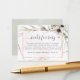 Cartes de demande de carnet de baby showers avec fleurs d'anémones et feuilles d'eucalyptus dans un cadre géométrique rose or.