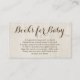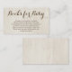 Un décor merveilleusement rustique pour votre encart d'invitation baby shower, demandant des livres au lieu de cartes pour le futur bébé bien lu sur le chemin.