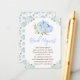 Cette jolie carte d'aquarelle blanche et mignonne contient des citrouilles bleu pastel et de belles compositions florales. Le texte combine écriture manuscrite et polices sans serif pour un look élégant et moderne. C'est parfait pour un baby shower d'automne. Graphiques par www.etsy.com/uk/shop/SunflowerDayLove