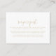 Cette carte de demande de recette de mariage en écriture fantaisie dorée est parfaite pour une douche de mariage rustique. Le design présente une belle police dorée calligraphiée sur fond blanc pour embellir votre événement.