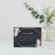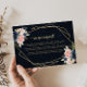 Cette carte de demande de recette de mariage géométrique en or floral est parfaite pour une douche de mariage rustique. Le design présente de belles fleurs peintes à la main en bleu foncé, bleu, marine, rose, rose pâle, or et feuillage vert, rassemblées en bouquets élégants, ornant un cadre géométrique.
