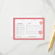 Carte D'accompagnement Demande de recette pour la douche de mariage cœur