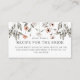 Carte à insérer pour une fête de mariage sur le thème des fleurs sauvages rustiques avec une illustration aquarelle de fleurs roses et blanches. La carte demande aux invités de remplir la carte de recette et de l'apporter à la fête. Envoyez cette carte avec la carte de recette correspondante disponible dans ma boutique !