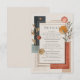 Capturez l'esprit chic et artistique d'un coucher de soleil dans le désert avec cette carte de détails moderne et abstraite. Ce design est un chef-d'œuvre de composition contemporaine, mêlant des formes géométriques épurées à des éléments botaniques organiques doux dans une palette de couleurs terreuses sophistiquée de terre cuite, d'orange brûlé et de bleu charbon profond. Ces formes audacieuses sont équilibrées par de délicates pousses d'eucalyptus vert sauge et de feuillage séché minimaliste, rehaussées de points de feuille d'or scintillants et de lignes élégantes et épurées, le tout posé sur un fond crème chaud et texturé. Cette carte est le moyen idéal de présenter avec élégance toutes les informations supplémentaires dont vos invités auront besoin, telles que l'hébergement, les directions ou votre site web de mariage. Son design polyvalent et élégant en fait également un excellent choix non seulement pour une carte de détails de mariage, mais aussi comme carte de réponse, invitation à un dîner de répétition ou carte d'information pour un événement d'entreprise ou un anniversaire marquant.