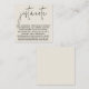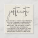 La Mini Design Moderne Simple Just A Note Carré Endoor Card offre un design élégant et minimaliste, parfait pour les couples qui veulent ajouter une touche personnelle à leurs détails mariages. Cette carte est dotée d'un script très simple en calligraphie moderne, ajoutant une élégance sophistiquée et sobre à votre suite mariage. Idéal pour inclure des informations importantes telles que des détails d'événement, des informations de registre ou des messages personnels, il allie charme classique et style contemporain, ce qui en fait une parfaite correspondance pour une variété de thèmes mariages. Conçue avec un arrière - plan crème antique blanc cassé, cette carte de boîtier conserve un look doux et intemporel qui complète toute palette de couleurs mariages. Le script de calligraphie moderne associé à une typographie raffinée crée un équilibre harmonieux entre simplicité et sophistication. Que vous l'utilisiez pour votre douche nuptiale, la réception ou les détails généraux du mariage, cette carte de boîtier laissera une impression durable à vos invités. Cette carte de boîtier Carré Just A Note est conçue avec facilité et élégance à l'esprit. Avec son modèle modifiable, vous pouvez personnaliser la carte sans effort pour répondre à vos besoins spécifiques, tandis que son design minimaliste assure qu'elle complète votre esthétique mariage globale. Parfait pour les couples modernes, cette carte ajoute une touche de raffinement à votre papeterie mariage, ce qui en fait un bel ajout à votre célébration.