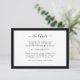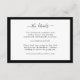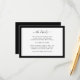 Cette carte de détails de bordure noir et blanc est un moyen élégant de partager toutes les informations importantes dont vos invités ont besoin tout en gardant votre papeterie de mariage magnifiquement cohérente. Un fond blanc croquant encadré par une bordure noire élégante fournit la toile parfaite pour une typographie de script élégante, garantissant que chaque détail est clair et raffiné. Son design minimaliste mais moderne complète votre suite d'invitation sans effort, tandis que les options de personnalisation vous permettent de mettre à jour le libellé, d'ajuster les styles et les tailles de police, et même de modifier les options d'arrière-plan pour s'adapter parfaitement à votre événement. Des informations d'hébergement et d'itinéraire aux itinéraires de week-end, cette carte s'assure que rien n'est négligé. Donnez à vos invités la clarté dont ils ont besoin avec une carte de