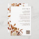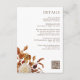 Fiche de boîtier Détails Floraux Automne Tenez vos invités informés avec cette carte de détails verticaux sophistiquée, ornée de teintes chaudes d'automne. Les feuilles d'aquarelle peints à la main en orange brûlé et en terre cuite se marient parfaitement avec les dahlias crème et beige, accentués par des roses en cuivre et rouille. Le code QR pratique facilite l'accès aux détails de l'événement. Créez une expérience d'invité transparente et laissez-les rester connectés facilement.
