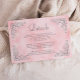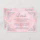 Cette élégante carte de détails mariages d'inspiration vintage présente le texte en écriture grise et les polices serif, encadrées par un délicat motif argenté vintage en quatre coins sur un arrière - plan d'aquarelle rose vif. Le cadre et l'arrière - plan d'aquarelle sont répétés au verso.