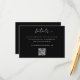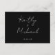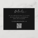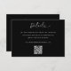 Cette carte de détails mariage noir et élégant présente un design minimaliste moderne avec du texte blanc dans un script manuscrit élégant. L'avant fournit des informations clés pour vos invités, tandis que l'arrière comprend un code QR pour un accès facile à votre site Web mariage et est personnalisé avec les noms du couple. Un ajout chic et pratique à votre papeterie mariage, parfait pour une célébration contemporaine.