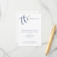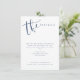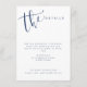 Cartes de détails de mariage simples et modernes avec une écriture manuscrite en bleu marine et blanc, élégantes et stylées.