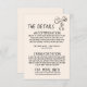 Détails d'informations pour les invités de mariage rétro colorés simples et élégants. Avec un fond crémeux laiteux et une mise en page de texte manuscrit noir avec des formulations fantaisistes et un nœud dessiné à la main vintage. Toutes les informations sont personnalisables comme le site web, le transport, l'hébergement. Procurez-vous-le avec d'autres produits de cette élégante suite de mariage rétro artisanale.