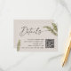 Partagez toutes vos informations importantes avec style grâce à cette élégante carte de détails de mariage botanique, présentant une verdure de fougère peinte à la main sur un fond taupe chaud doux. La mise en page minimaliste avec un script moderne offre un look propre et intemporel - parfait pour les mariages botaniques, bohémiens ou rustiques chic. Inclut un espace pour votre site web de mariage, lien RSVP ou code QR, le rendant à la fois beau et fonctionnel.