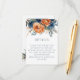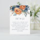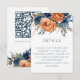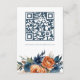 Détails de mariage avec des florales bleu marine et orange brûlée. Des florales rustiques et un texte moderne simpliste avec un code QR pour que vos invités scannent pour visiter votre site web de mariage. Changez l'URL d'exemple par votre URL de site web pour que votre code soit généré automatiquement.
