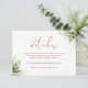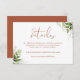 Cette élégante carte de détails de mariage avec feuilles de verdure botanique en terre cuite peut être personnalisée avec vos informations en typographie chic. Conçue par Thisisnotme©