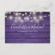 Une carte d'information détaillée de mariage rustique avec une jolie guirlande lumineuse et un fond en panneaux de bois violet. Personnalisez avec vos détails spéciaux dans une typographie élégante et vos noms et date de mariage au verso. Conçu par Thisisnotme©
