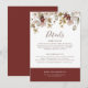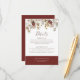 Notre carte de détails de mariage "Watercolor Botanical Bordeaux" est un moyen élégant et splendide de partager les détails importants de votre journée spéciale. Avec des fleurs délicates peintes à l'aquarelle en haut, la carte combine une calligraphie moderne avec des lettres élégantes sur un fond blanc épuré. Personnalisable avec vos informations de mariage spécifiques, elle garantit que vos invités ont tout ce dont ils ont besoin pour célébrer avec vous. Le design est complété par un rectangle bordeaux audacieux en bas, ajoutant une touche de couleur sophistiquée. Alliant parfaitement style et praticité, cette carte complète parfaitement tout mariage romantique à thème botanique.