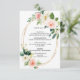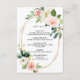 Carte de détails de mariage élégante avec des fleurs aquarelles peintes en rose pâle, blanc et feuillage vert avec un cadre ovale doré. Pour une personnalisation plus avancée de ce design, veuillez cliquer sur le bouton "Personnaliser". Des articles assortis sont également disponibles.