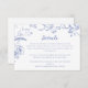 Présentation de l'ajout parfait à votre suite de mariage - une carte d'information élégante et belle avec un charmant design d'art en ligne botanique inspiré de la chinoiserie vintage bleue et une calligraphie fantaisiste. Cette carte est parfaite pour fournir à vos invités tous les détails nécessaires sur votre jour spécial, y compris les hébergements d'hôtel, le transport et toute autre information importante.