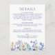 Carte D'accompagnement Détails de mariage de la fleur sauvage de bleu sar