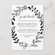 Carte D'accompagnement Détails de mariage de la guirlande florale noire e