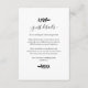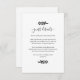 Avec une élégante guirlande florale noire et blanche et une carte de détails de mariage de typographie chic, vous pouvez modifier les détails de votre RSVP et de votre mariage ainsi que les noms du couple spécial au verso. Conçu par Thisisnotme©