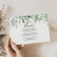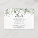 Cette carte de détails de mariage de verdure d'eucalyptus de printemps est parfaite pour un mariage moderne. Le design présente un feuillage vert d'eucalyptus peint à la main à l'aquarelle, inspirant une beauté naturelle.